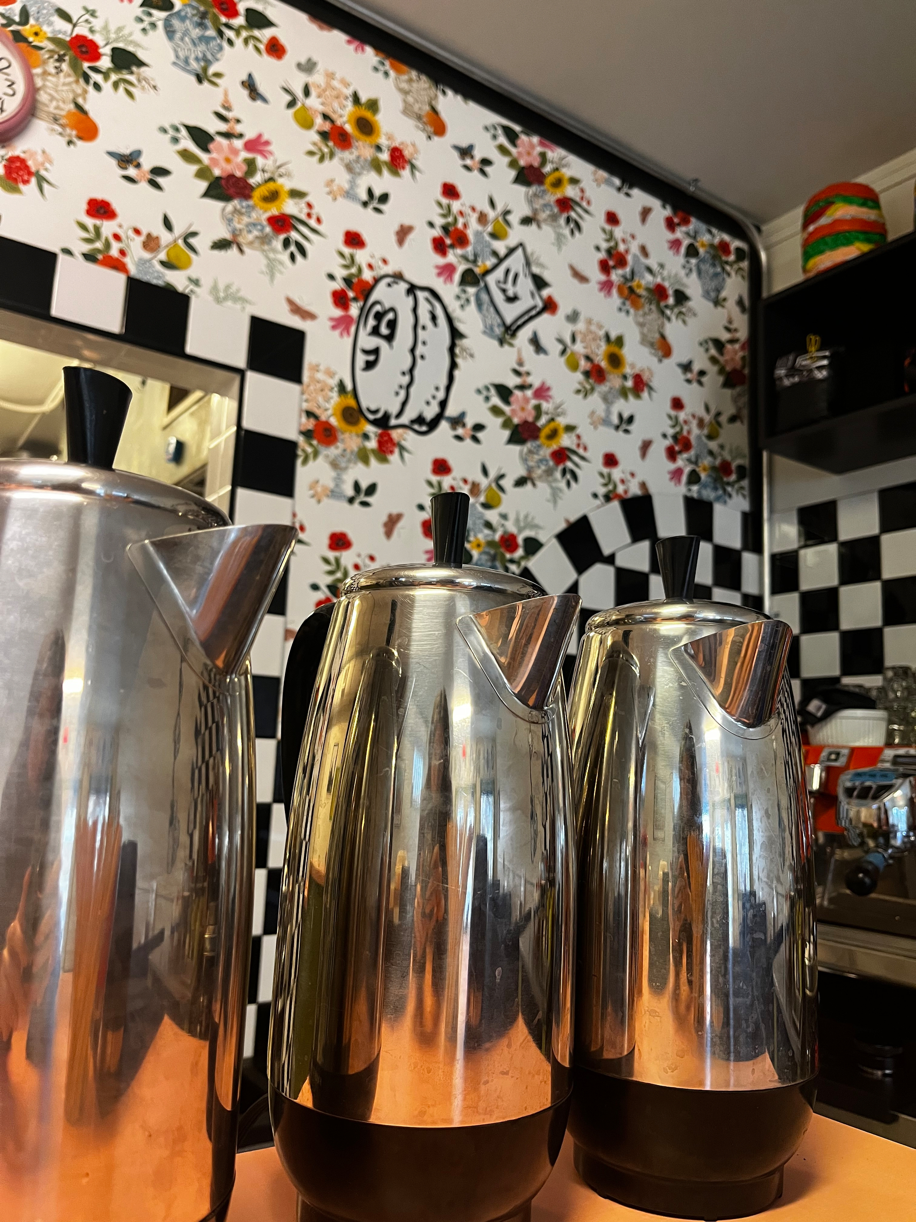 My friend Lynn opened a diner - Lynny’s, like Denny’s but with more love. It began as a trailer & there is now a brick & mortar too. Originally she only needed one percolator to manage the demand & now now these three beauties greet you when you walk in. It’s been such a joy to see see her dream grow.. & to enjoy the coffee.