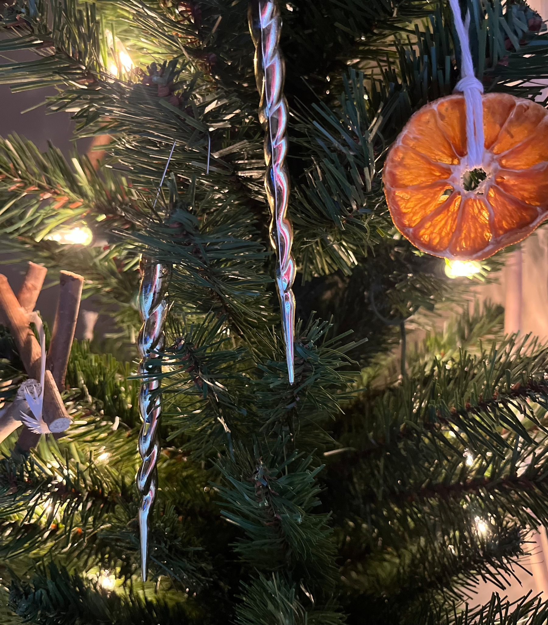 I am excited to begin this photo challenge! That said, frost has not arrived in Texas just yet… We got close to freezing last night but, not quite. So.. the faux icicles on my Christmas tree are as close as we get for today!