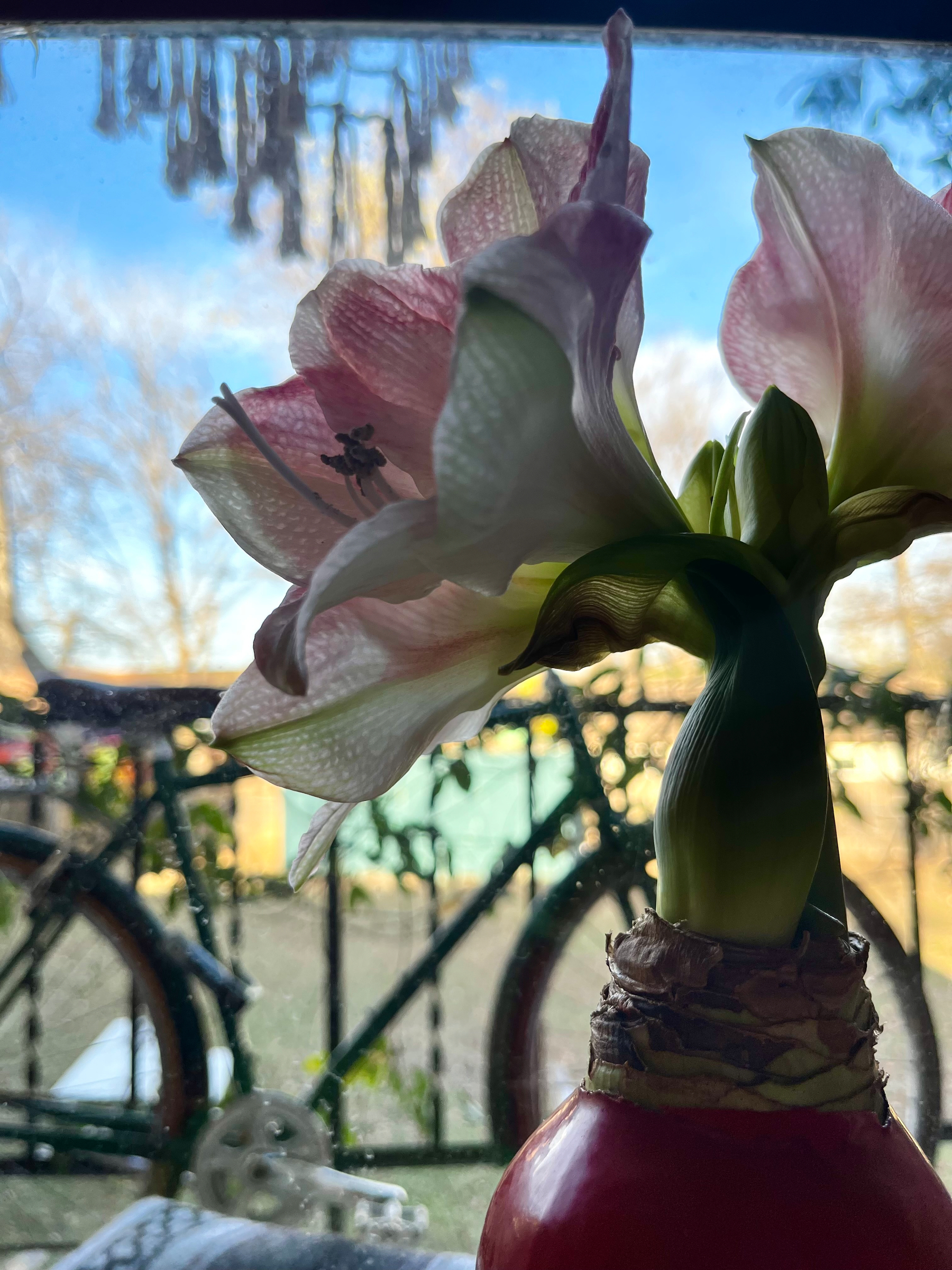 I returned to my apartment after a few days away with family to find these blooming in the window. Quite the welcoming committee